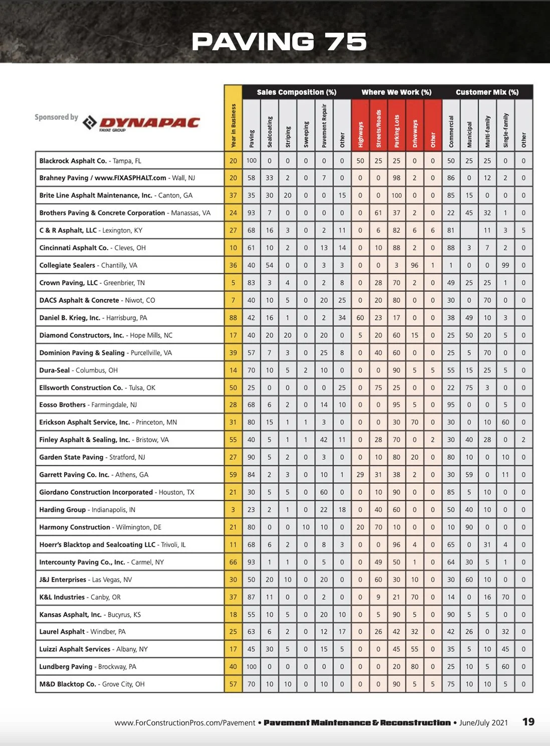 AC Business Media and Pavement® Maintenance and Reconstruction Magazine named Garrett Paving Company, Inc. in Athens, Georgia a Top Contractor for 2021. This elite list of the Top 75 Asphalt Paving Contractors is released each year.